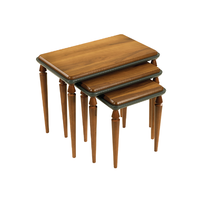 The Hena nesting and coffee table, with its walnut and anthracite combination, offers a modern and robust look, while its durable and elegant construction makes it stand out.